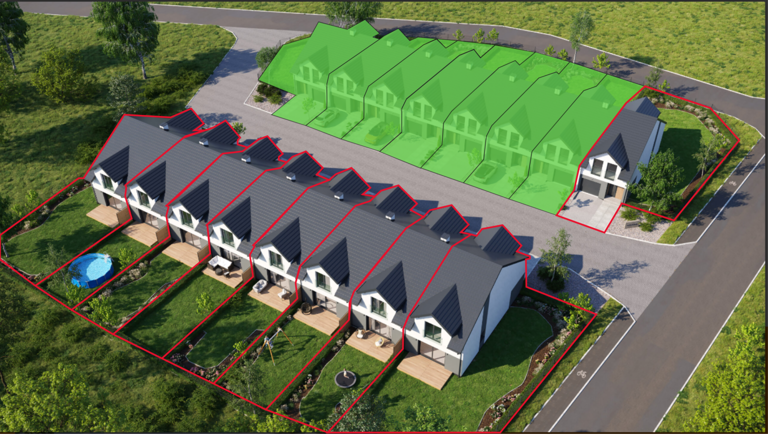 Każdy szereg posiada dużą działkę, co pozwala poczuć się bardzo komfortowo. Szeregi wewnątrz mają działki o powierzchni 250 metrów kwadratowych, natomiast szeregi zewnętrzne o powierzchni 450 metrów kwadratowych.