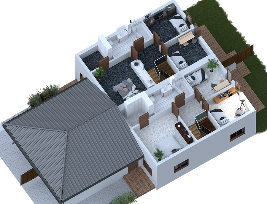 Domy są doskonale ocieplone, dzięki czemu długo utrzymują ciepło. Dodatkowo, korzystając wyłącznie z pompy ciepła, sprawiamy, że dom jest całkowicie przyjazny środowisku."