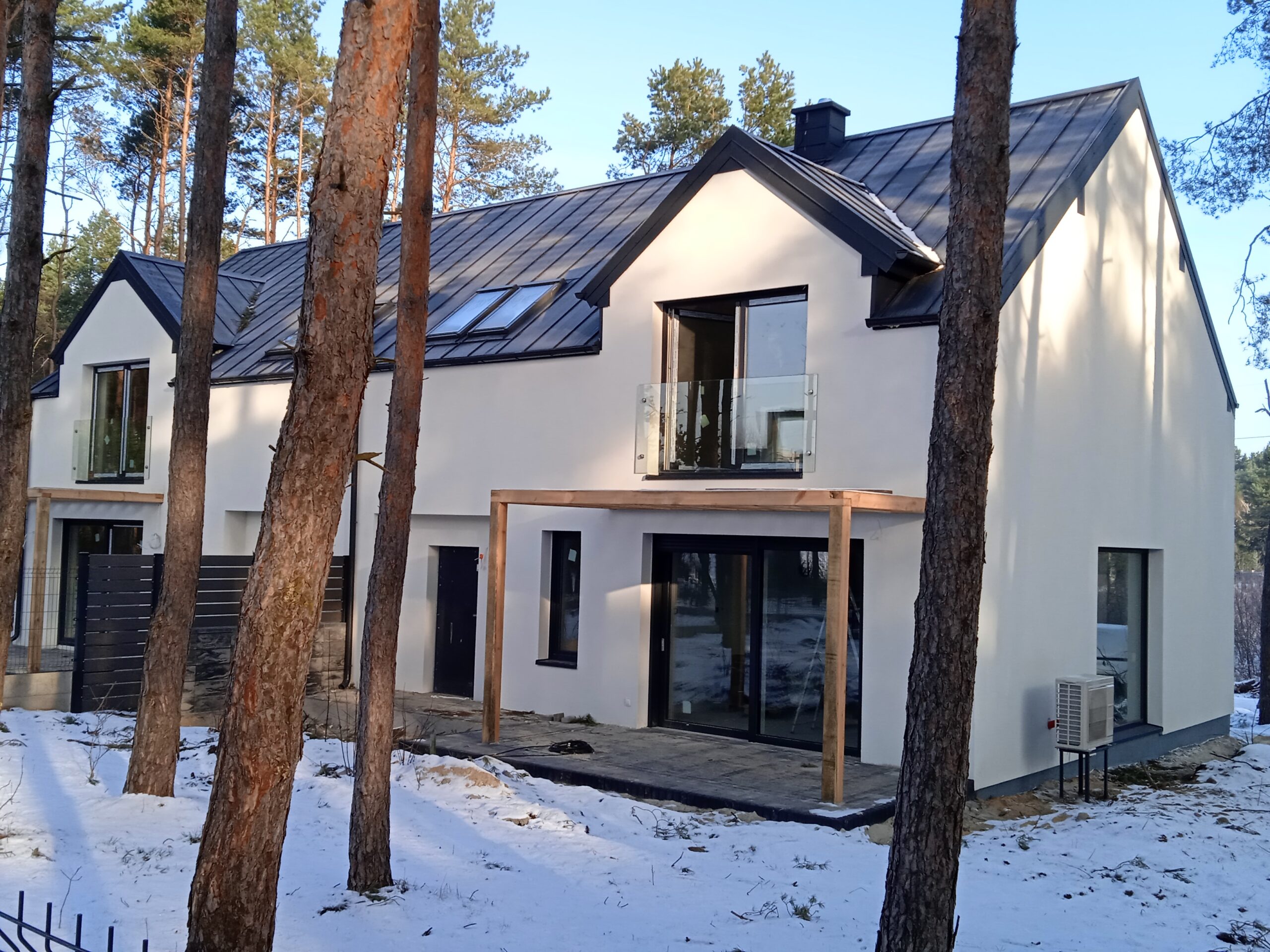 Domy są doskonale ocieplone, dzięki czemu długo utrzymują ciepło. Dodatkowo, korzystając wyłącznie z pompy ciepła, sprawiamy, że dom jest całkowicie przyjazny środowisku.